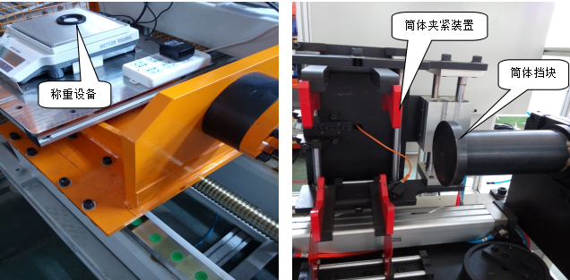 裝芯工序:先在稱(chēng)重設備上方放置一片襯墊,然后拿取已測量直徑后的載體掃描二維碼,觀(guān)察指示燈為黃色后,將載體和襯墊放入導向到,拿取一只空殼體放入筒體夾緊裝置的夾爪上(靠筒體擋塊放置),